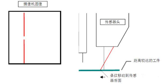 由于激光條紋是以一定的角度投影的,如果工件同傳感器距離太近,激光條紋的位置就相對靠前。反過來,如果工件同傳感器距離遠一些,工件表面激光條紋的位置相對靠后。攝像機觀察激光條紋的位置,傳感器能夠測量距離工件的垂直距離。從條紋的形狀上看,傳感器也能夠測量表面的輪廓和焊縫在條紋上的位置,這就允許傳感器測量焊縫的橫向位置。